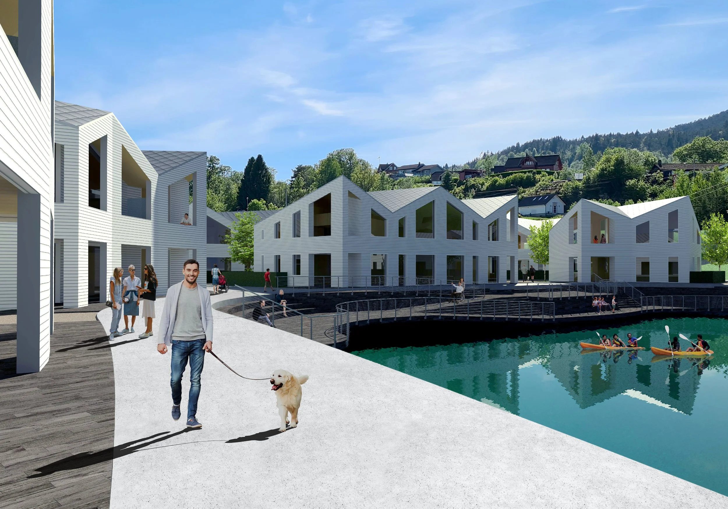 Sentrumsutvikling av et regulert område rundt en våg på Hatlestrand i Kvinnherad kommune, med fokus på identitet og attraktivitet og i kontakt med sjø og landskap. 40 boliger i alle størrelser med 1000 m² næringsareal langs promenade, med offentlige rom og lekeplasser.